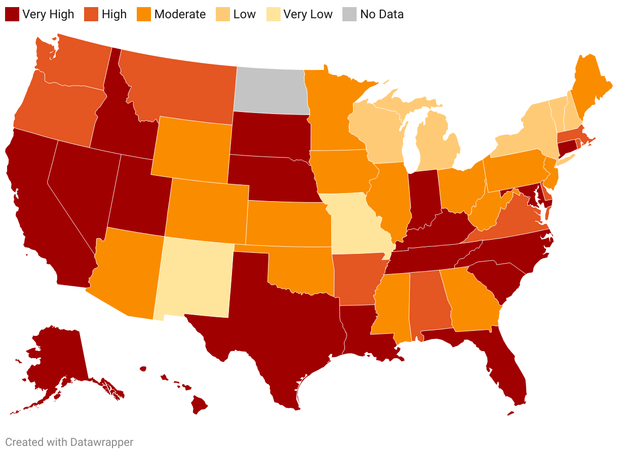 During the week ending Sept. 6, the following states and the District of Columbia reported the highest wastewater COVID viral activity levels, per the CDC: